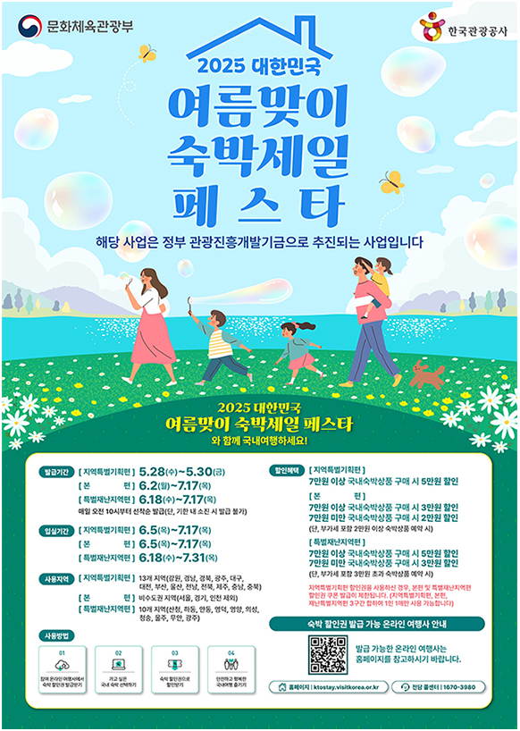 문화체육관광부와 한국관광공사, 5월 28일부터 '2025 대한민국 여름맞이 숙박세일페스타' 시작