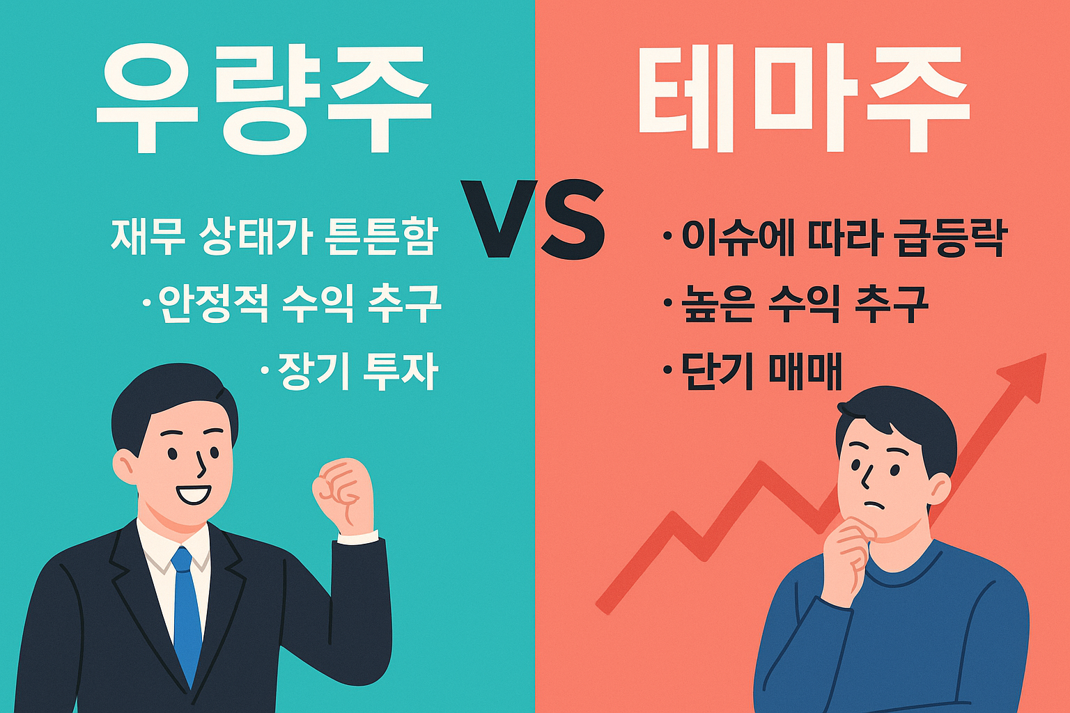 주식을 시작하다 보면 이런 말을 자주 듣습니다. “난 우량주만 해.” “요즘 테마주 장난 아니야.” 과연 이 둘은 어떤 차이가 있고, 어떤 기준으로 골라야 할까요?